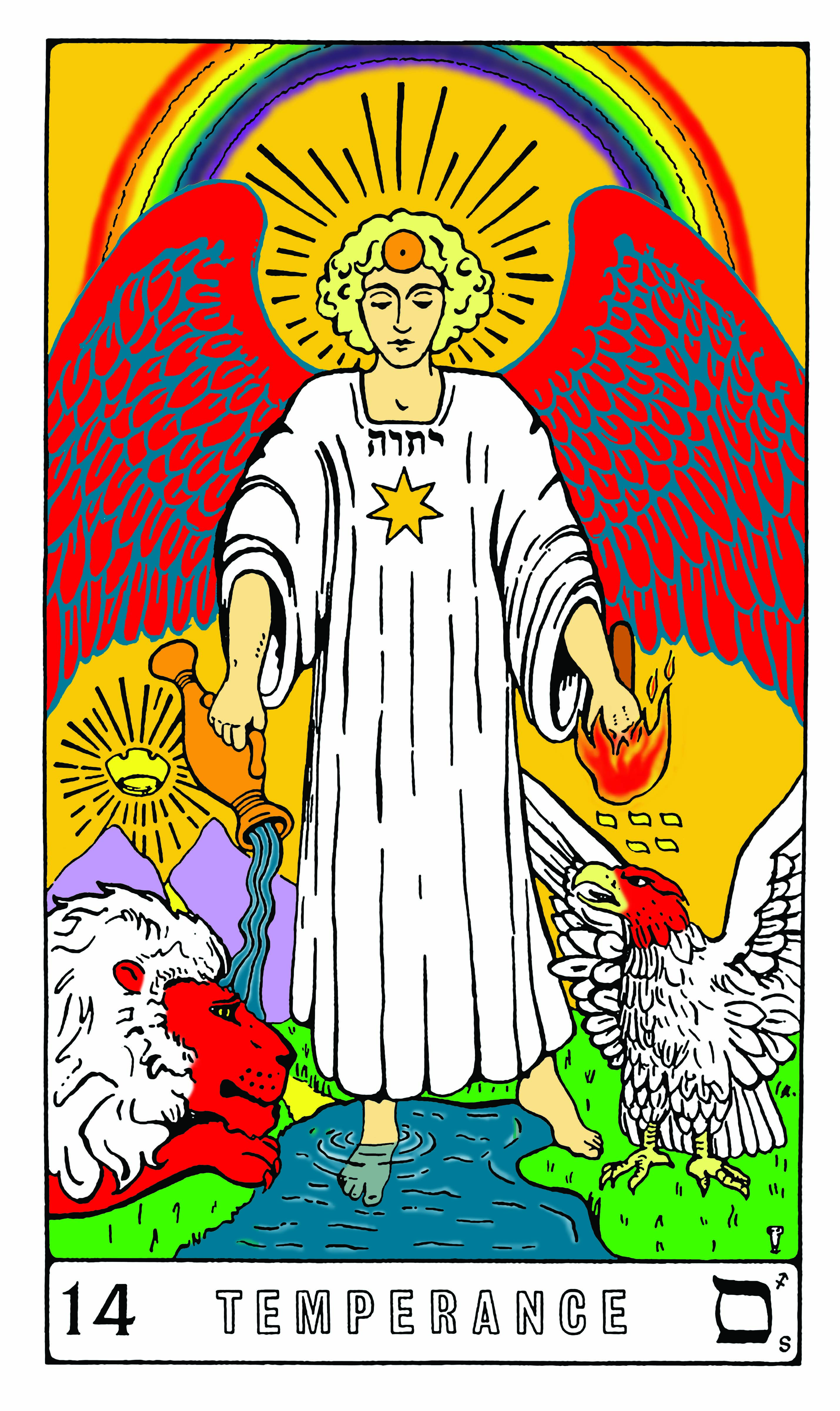 The Chariot expresses itself through the activity taking place on the Key below it, called Temperance. Temperance exemplifies the Law of Verification. We must try out, and then experience in our everyday activities, all the lessons of the Keys. Through this verification we arrive at the place that results in the World Key.